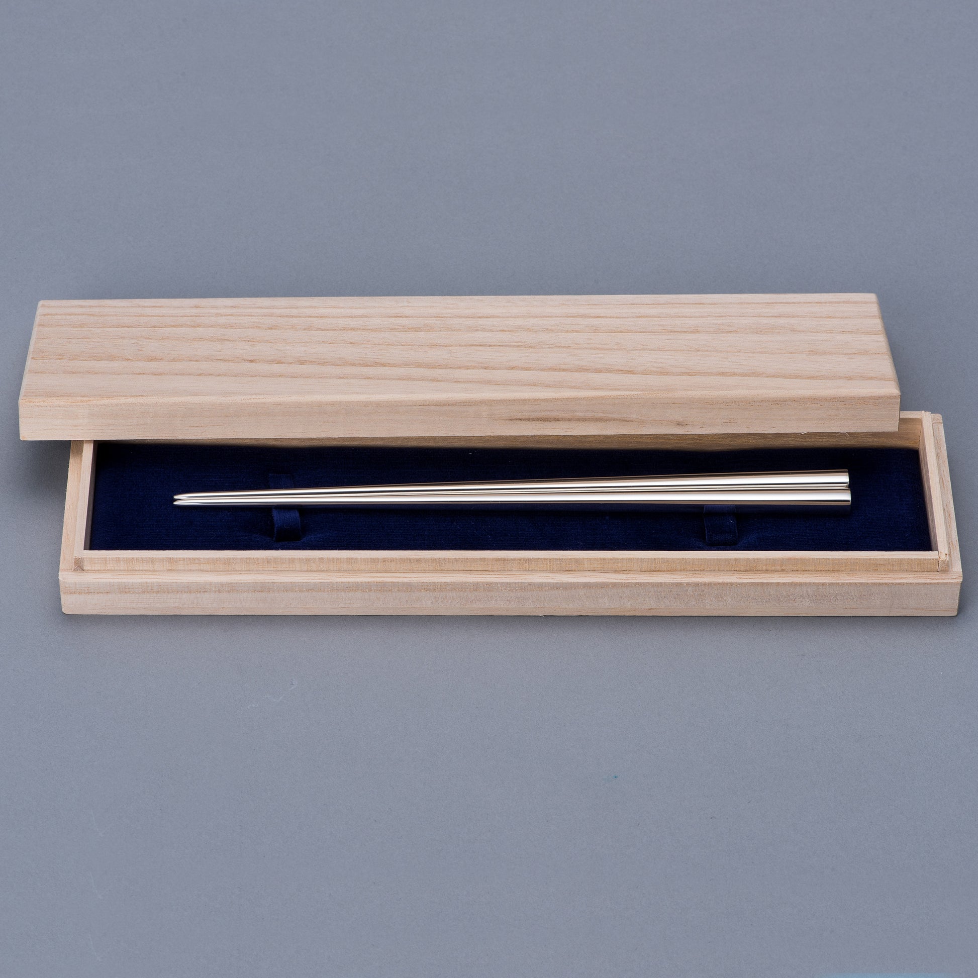 銀製のお箸です。長さは22.5cm。表面は光沢があります。名入れが可能です。