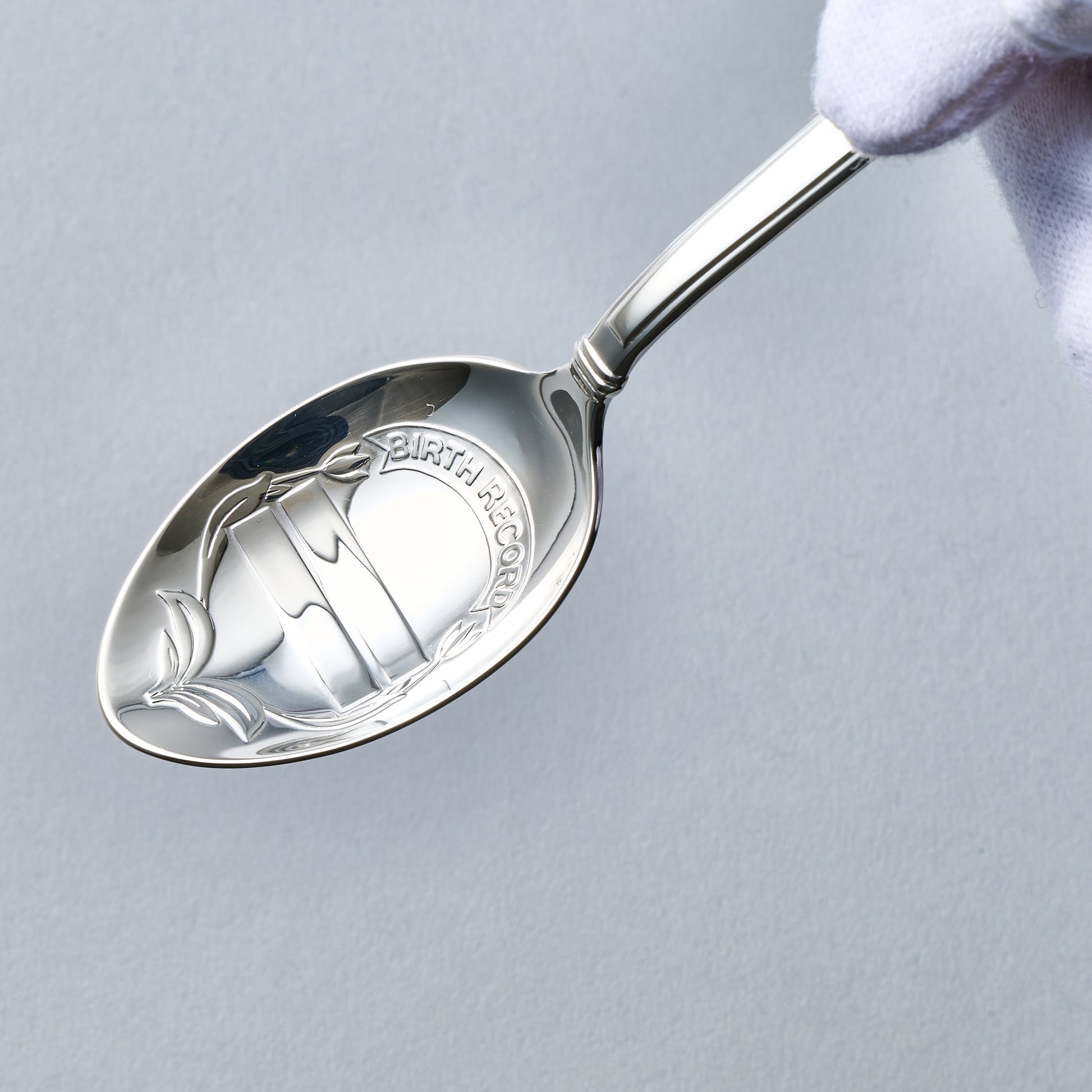 赤ちゃんの誕生日を刻む、世界でたったひとつの銀製スプーンです。