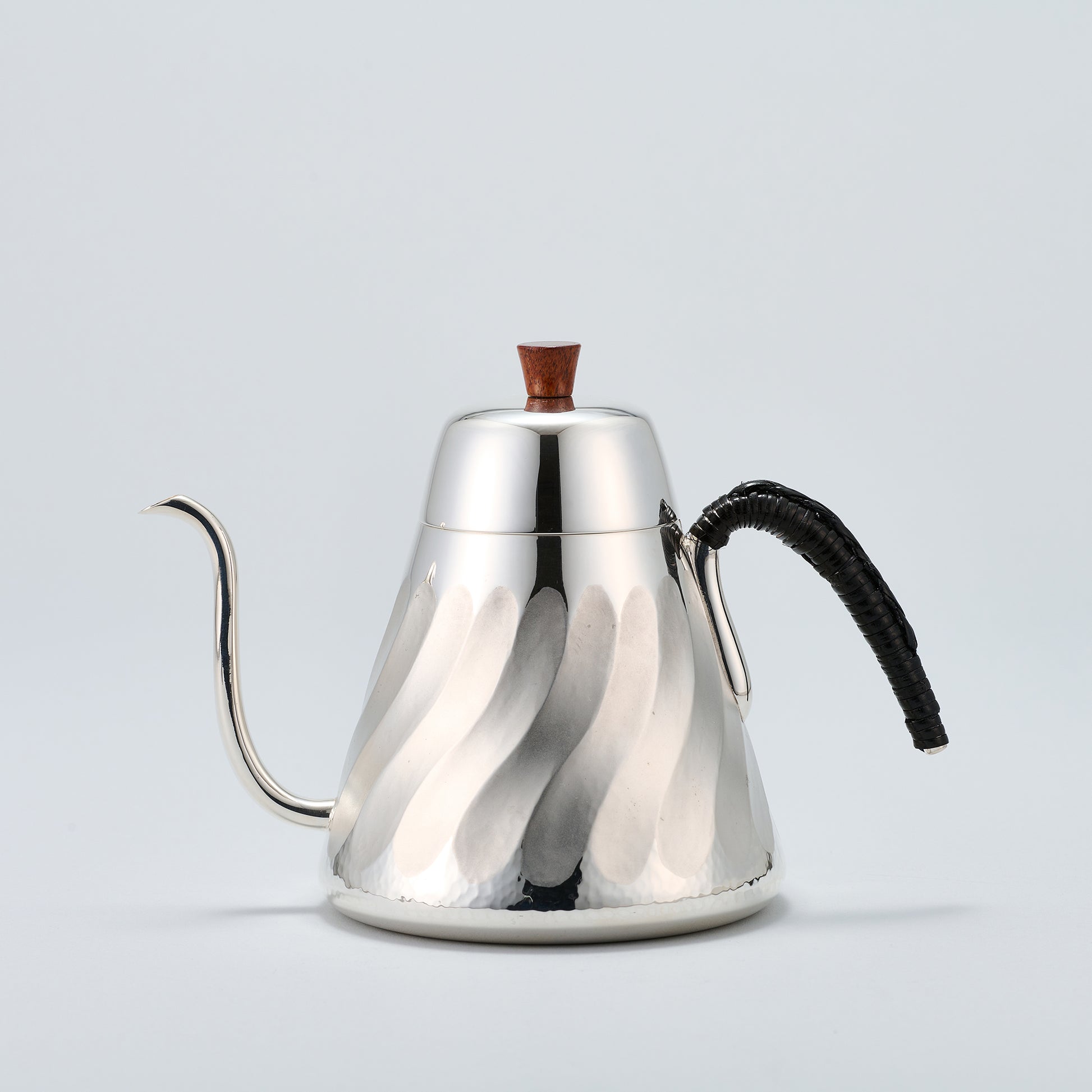 銀製のコーヒーポットです。直接火にかけることはできません。沸かしたお湯を入れて下さい。ハンドルの籐巻きも東京の伝統工芸です。