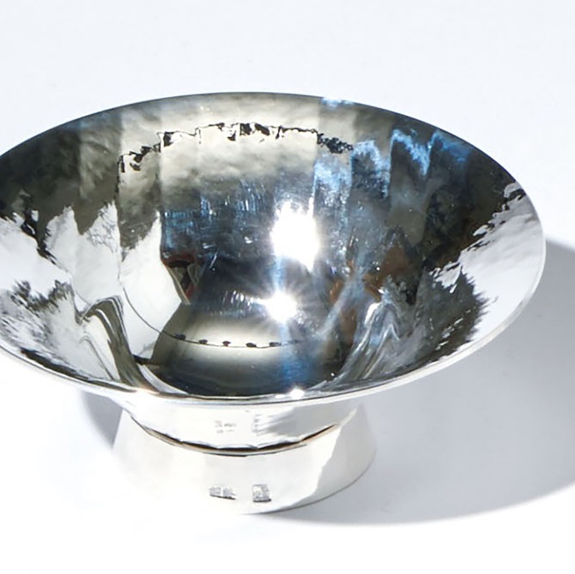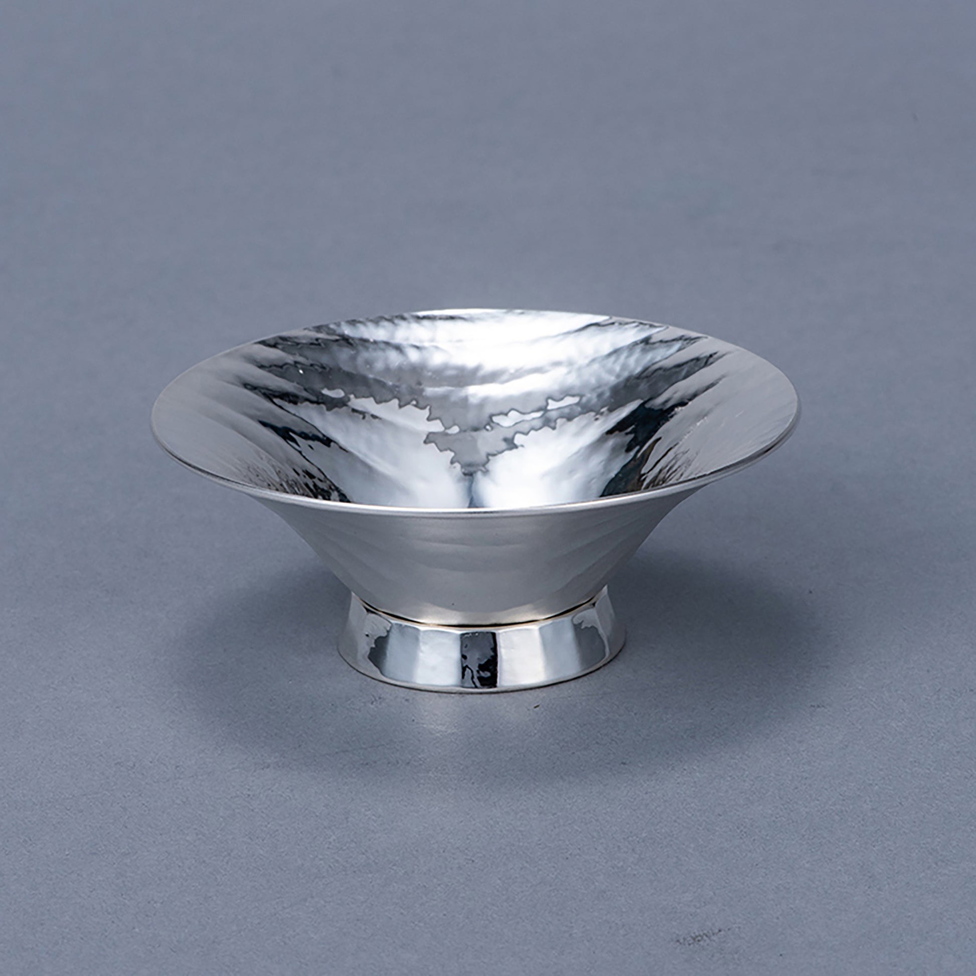 本品「純銀 玉盃 ながれA」は、盃の両面が鏡面のような磨き仕上です。