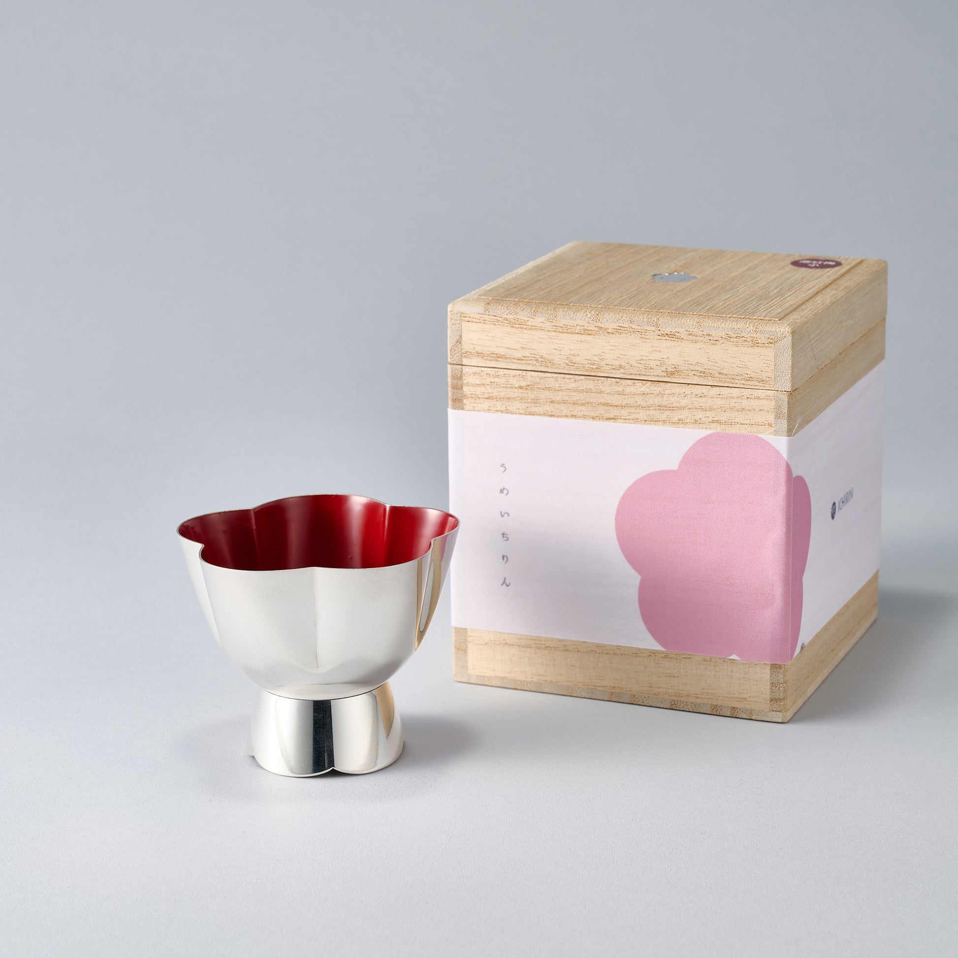 純銀 玉盃 うめいちりん(大)濃紅梅