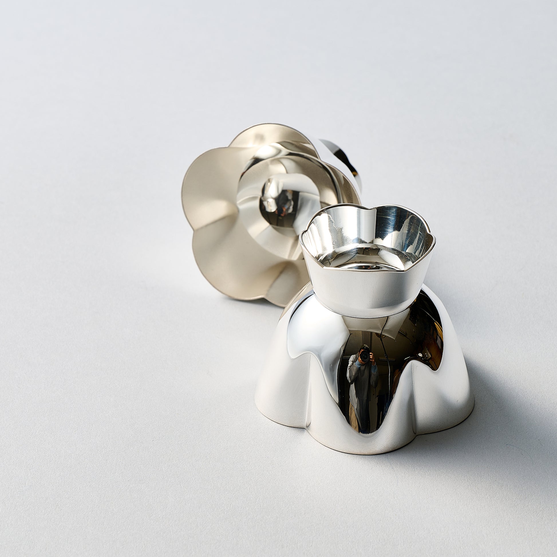 純銀に漆を施した 淡紅梅と濃紅梅の大、小