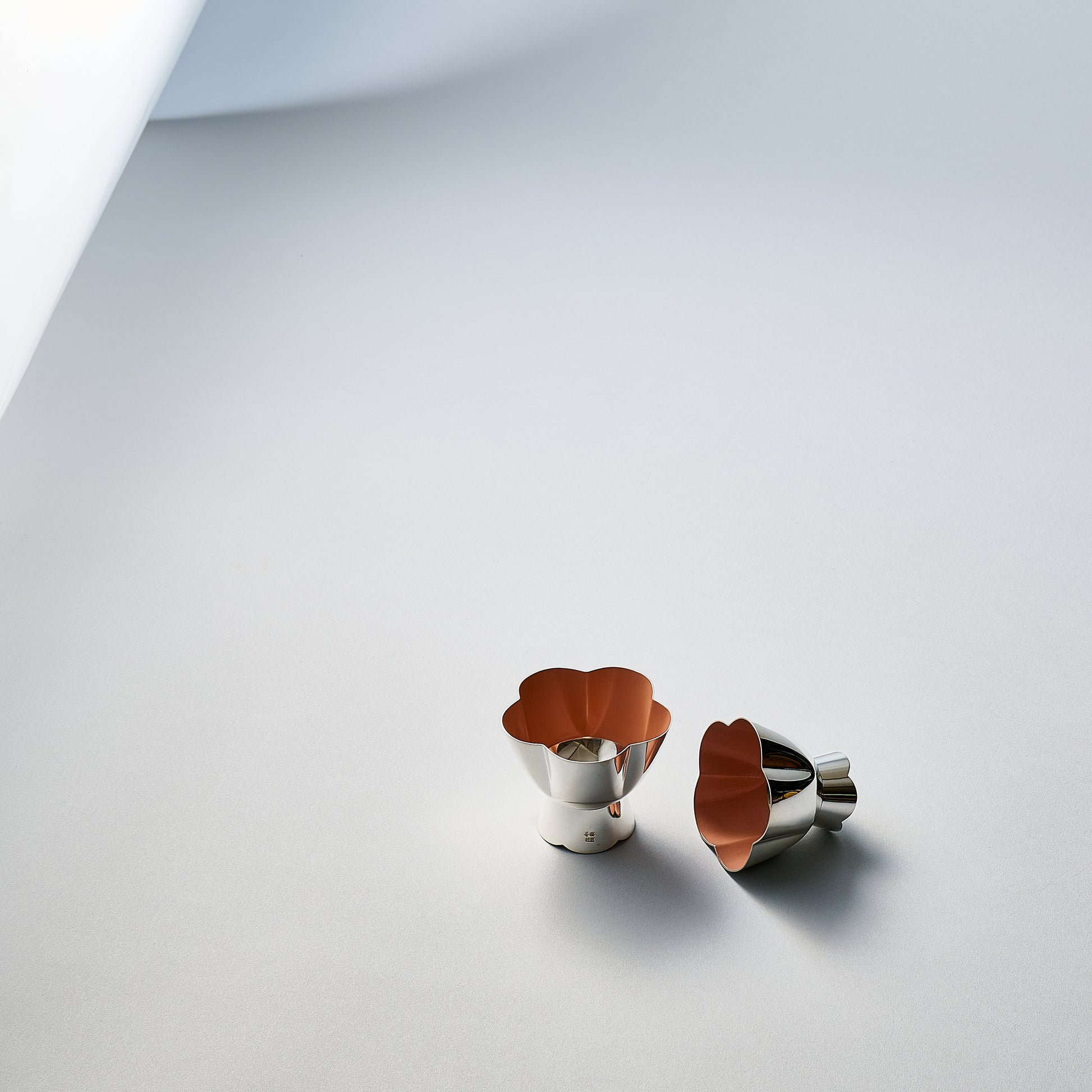 純銀に漆を施した 淡紅梅と濃紅梅の大、小