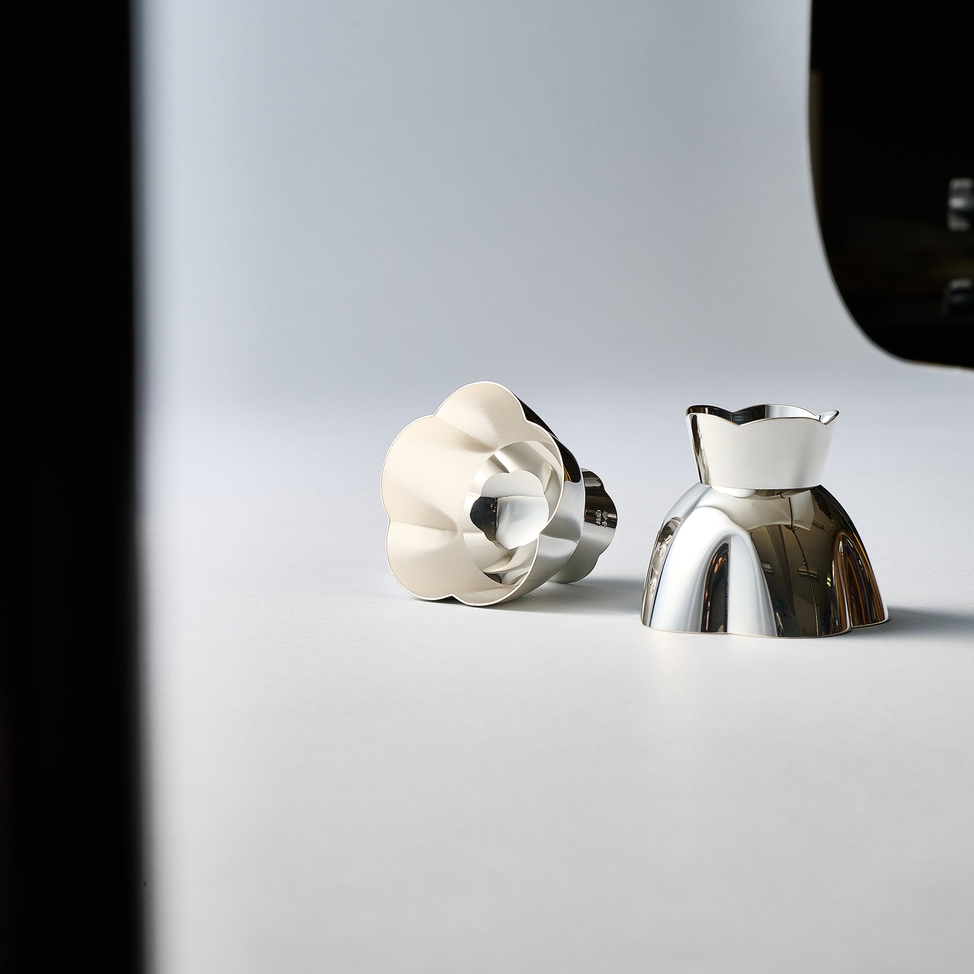純銀に漆を施した 淡紅梅と濃紅梅の大、小